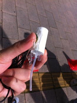 バスを待っている間、虫よけスプレーの瓶を落として割る。
