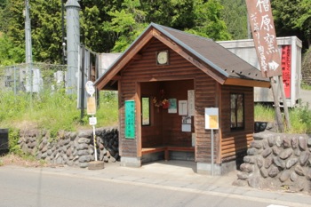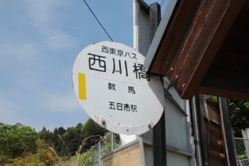バスはえっちらおっちらと進み、西川橋バス停へ到着。 ブザーを押して1人下車します。
