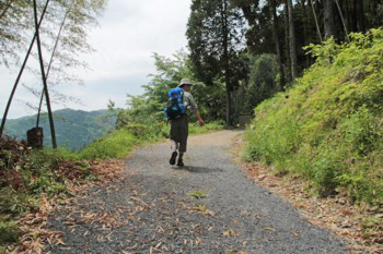 アスファルトの道を上って進みます。