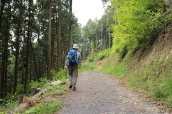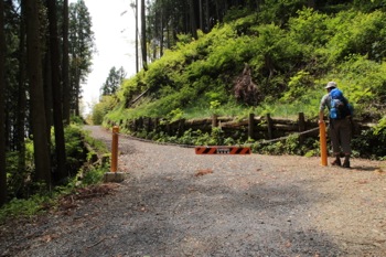 んで、延々と(と言うほどではないけど)舗装された道を登って進みますが、いまいちどこから山へ入るかわかってない。