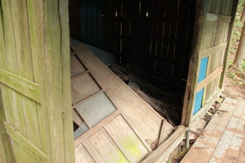 でも、小屋の壁がぶっ壊れていて、中はメチャクチャな事になっていました。