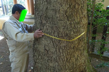 なんで僕が怪しいと思ったかと言うと、このおじさん、神社から遠くはなれた木の太さも測っていたんですよ、