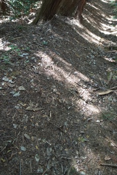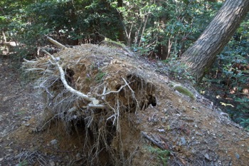 根っこが露出した道。