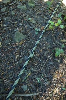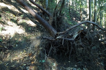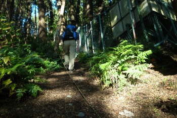 この上にある『川井第二配水所』までこの急な登りは続きますが、大した距離ではありません。またロープも出ていますが、このロープは登り用では無く、どちらかと言うと下り用だと思います。