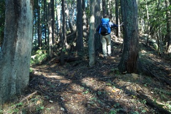 前日は雨だったので、湿った森の濃厚な空気が美味しい登山道です。