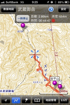 いちおうヤマレコで調べてきた座標と、今自分が立っている場所が小ピークで一致しているので