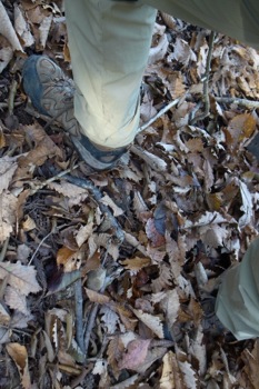 ズマド山直下のトラバース道は、道が谷川にやや傾斜しているので、滑らないように注意して歩きました。