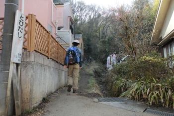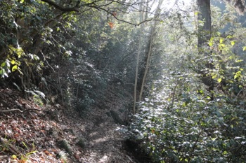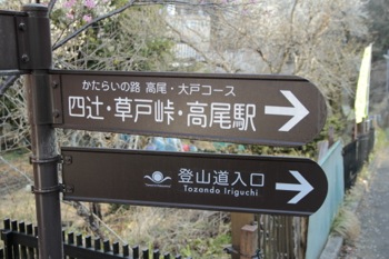 ケーブルカーの駅へ向かう道から外れて、南高尾山陵の登山口へ。