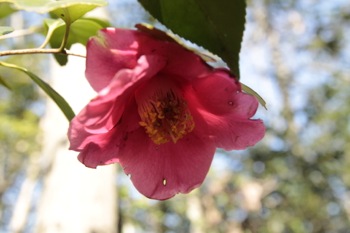 頭上は椿。