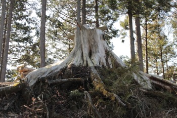 すると、目の前に白くて大きい切り株が出現。