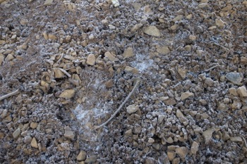 地面を見ると足跡が山へ伸びていました。