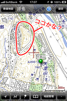 しかし、何か客観的な資料となるものがなければ、第三者に見てもらうにしても説得力が無いと思いちょっと困っていたのですが、 ふとiPhoneのマップに画面を切り替えると・・。。