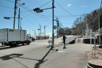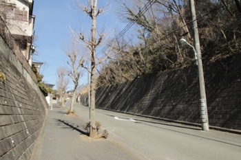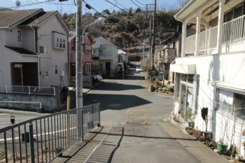 団地に添って、番神山のすぐ近くの道を歩きます。