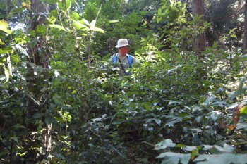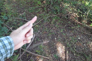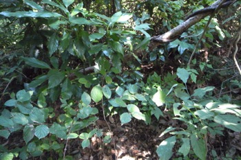 しばらくヤブを豪快に漕ぎながら進むと、平らな場所・・。。