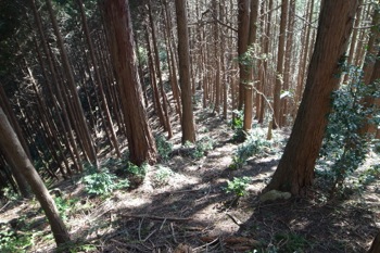 先が思いやられるなぁ・・と思っていたら、尾根を半分ぐらい登った所から、 ヤブがほとんど無くなり快適な尾根歩きに。