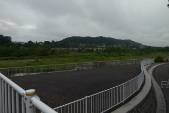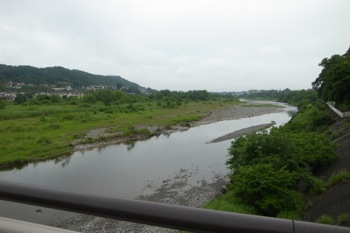 この橋は多摩川にかかっており、右手にこれから歩く『羽村草花丘陵』が見てきます。