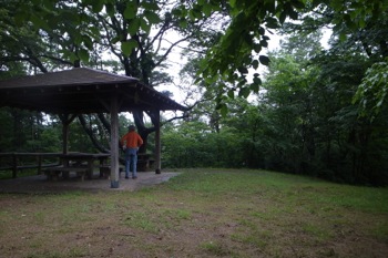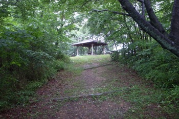 さらに道なりに進むと前方に東屋のようなものが見えてきます。