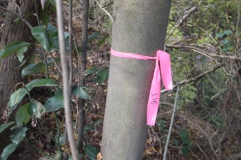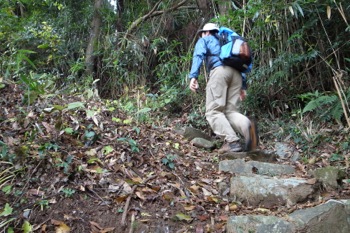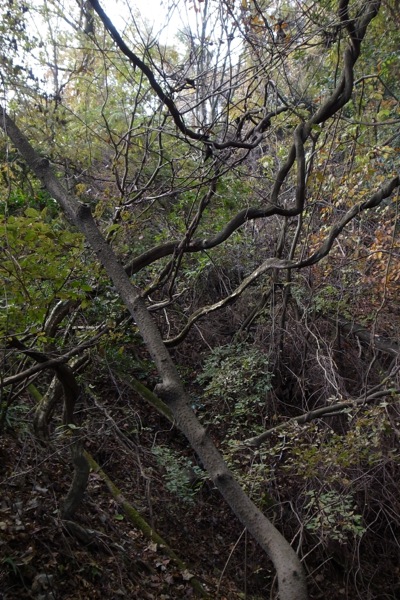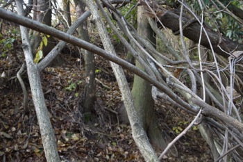 道が平なのは良いのですが、倒木とそれに絡まる太い蔓(つる)が邪魔ですね。