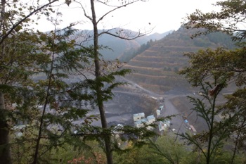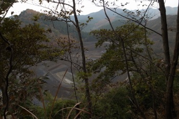 で、この枝尾根へ上がると、前に石灰の採掘場がド〜〜ン!と見えます。