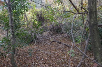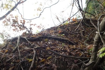 この左下は崖ではありません、3m〜4m下は平らな場所(倒木の巣)です。