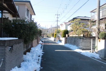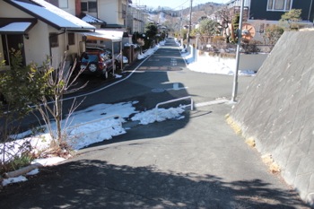閑静な住宅街を抜けて突き当りを左へ曲がると、2股に分かれた道がでてきます。