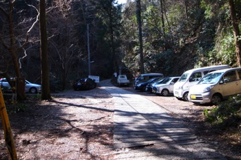 しばらく歩いて行くと、駐車場っぽい場所。