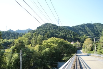 橋を渡る途中、これから歩く尾根が正面に見えてきました。