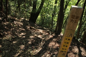 鉄塔を超えた後は、急斜面の登坂、地面が乾燥していてザレていてよく滑る。