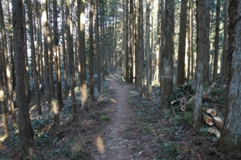 新多摩変電所の西側から、山の中に通じるしっかりとした登山道が伸びています。