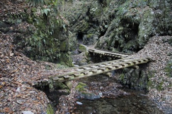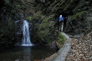 進んで行くと、前方に小さくて可愛い滝が見えてきました。