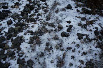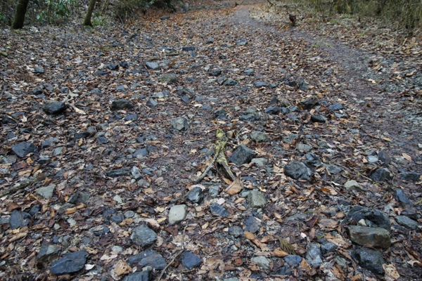 金剛の滝まであと100mぐらいかな、歩いて行くと地面は握りこぶしぐらいの石がゴロゴロしていて・・。。
