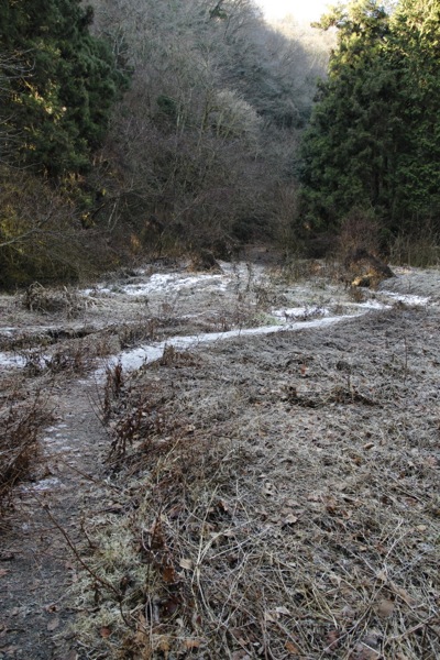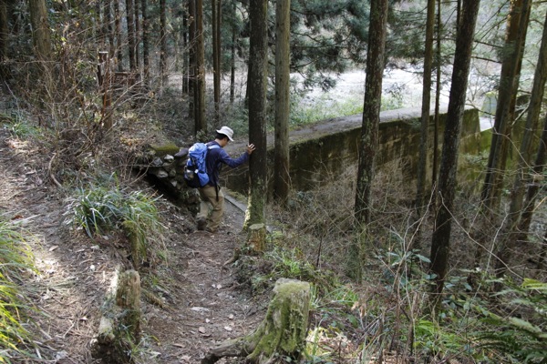 道は細くなって堰堤の裏側へ続いていますので、道なりに歩きました。
