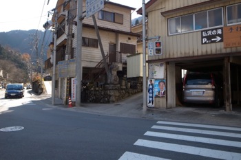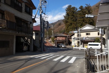 交差点(右に曲がると檜原村役場(本宿役場前バス停))