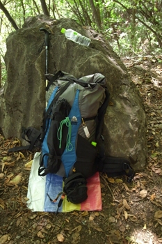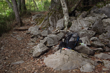 ある程度まとまった距離を40分程歩いた後は、心地よい岩陰で休憩をとりました。
