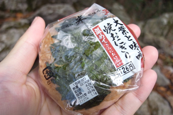 ここで今朝、購入したコンビニのおにぎりを食した。