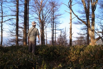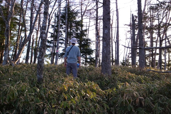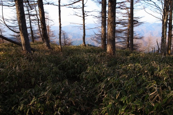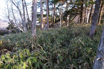 標高1937mの小雲取山の山頂は背が低い笹に覆われていました。