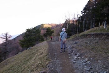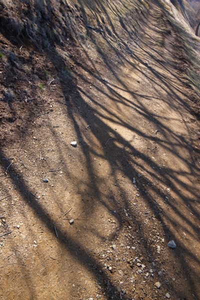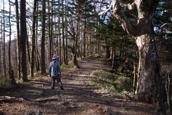 朝の縦走路は、木々の影が長くて素敵な縞模様です。