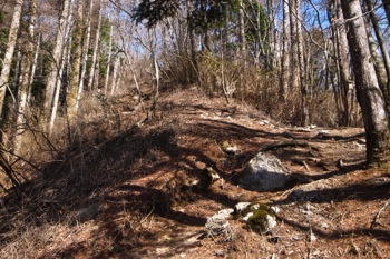 いちどここで巻き道から外れ、石尾根の上に乗ります。