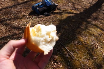 地面にベッタリと座り込んで、パンを食べ、チョコをかじった。