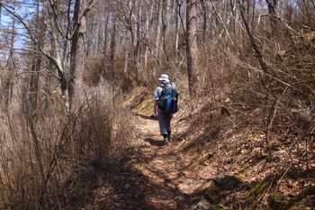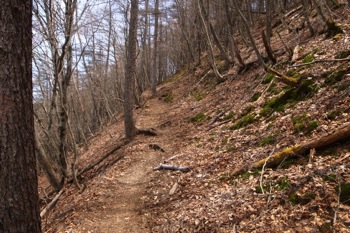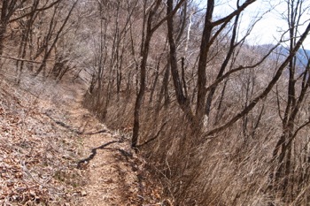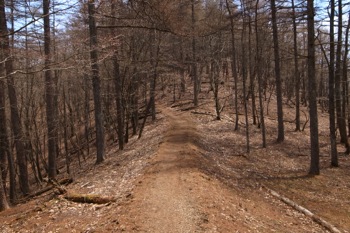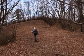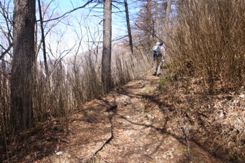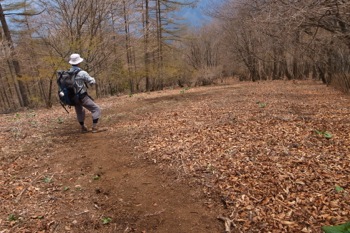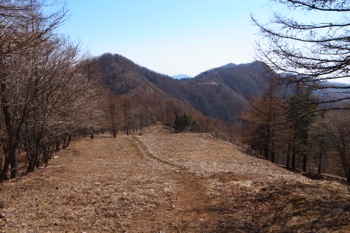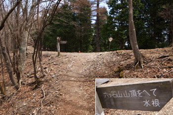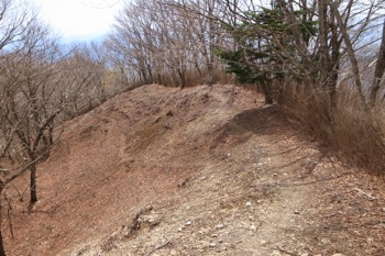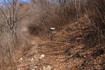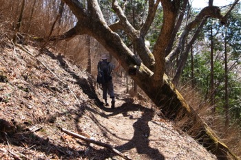 細い巻き道を進んで行き、倉戸山へ続く登山道との合流点に出た所で、