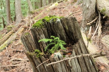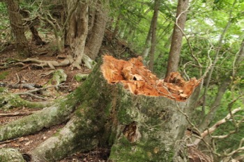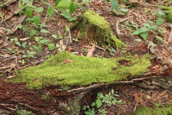露岩の左側を登ると、次に見えてきたのが、大きい切り株。