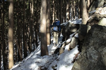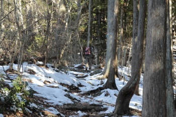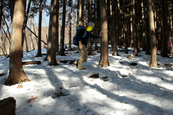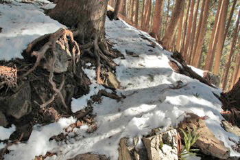 ところどころ雪が出ていますが、まだアイゼンを出す程ではありません。