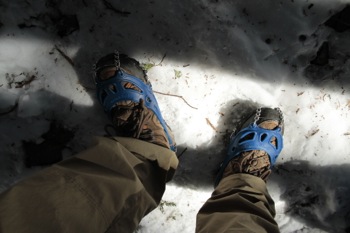 装着して歩いてみると、思った以上にしっかりと雪面を噛んでいて良い具合です。