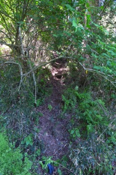 で、よくよく観察しながら見て行くと、山の中に続く細い踏み跡がありました。