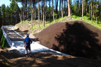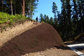 遠くから見てもハッキリとわかる山へ伸びる道がありました。