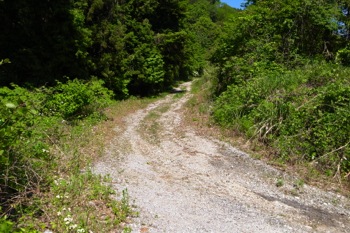んで、登山道を歩いて行くと、唐突に林道が出てくる。