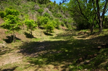 山の中へ入れる細い道がある。しかし入らない方が良い。