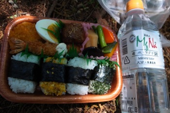 それで誰もいない山頂でお弁当を食べたんですけど。 これがなかなか美味しいんです。