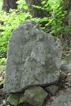 また石仏のような無骨な岩もさりげなく置いてあります、かつては打ち捨てられていたのだろうか?、ひどく風化してしています。