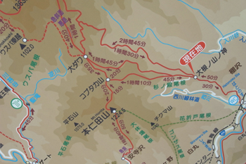 設置された地図によれば、ここから杉ノ殿尾根を伝わって目的地を目指すべきだということがわかる。